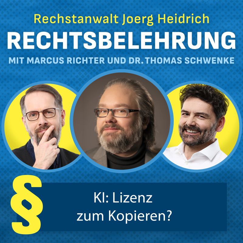 Rechtsanwalt Heidrich ist auf Einladung von Dr. Thomas Schwenke und Marcus Richter zu Gast im aktuellen Rechtsbelehrungs-Podcast.
